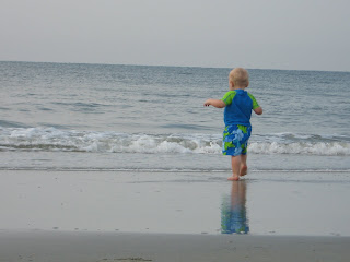 This little tyke kept his parent's hopping! He didn't know whether he wanted in the water or on the and. He finally decided on both.